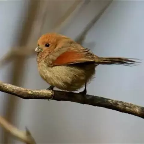 褐翅鸦雀是莺科、鸦雀属小型鸟类,体长11-13厘米。嘴短而粗厚、似鹦鹉嘴,头、后颈和颈侧栗红色。…