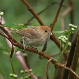 棕头鸦雀(学名:Paradoxornis webbianus)一种全长约12厘米。头顶至上背棕红色,上体余部橄榄褐色,翅红棕色,尾暗褐色。喉、胸粉红色,下体余部淡黄褐色的鸟类。常栖息于中海拔的灌丛及林缘地带,分布于自东北至西南一线向东的广大地区,为较常见的留鸟。