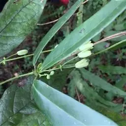 五月瓜藤(学名:Holboellia angustifolia Wall.)是木通科八月瓜属植物。常绿木质藤本。茎与枝圆柱形,灰褐色,具线纹。掌状复叶有小叶(3)5-7(9)片;叶柄长2-5厘米。花雌雄同株,红色紫红色暗紫色绿白色或淡黄色,数朵组成伞房式的短总状花序。果紫色,长圆形;种子椭圆形,长5-8毫米,厚4-5毫米。花期4-5月,果期7-8月。
