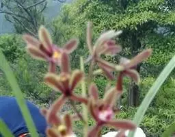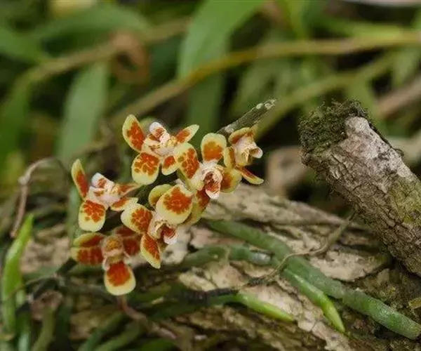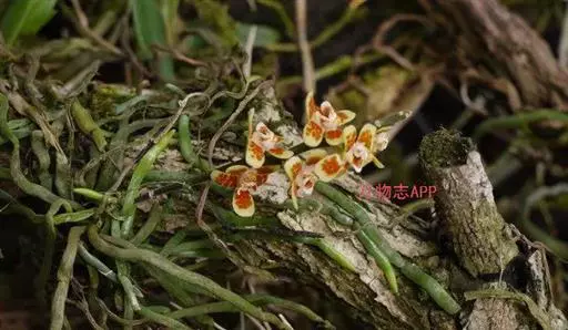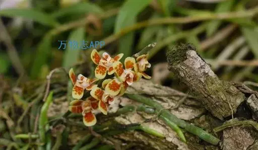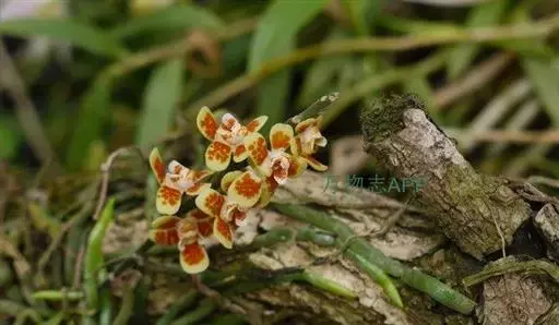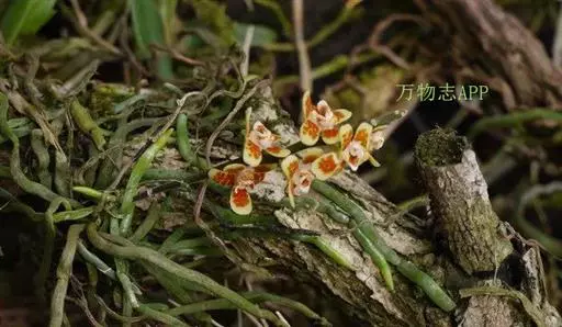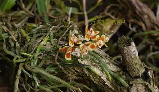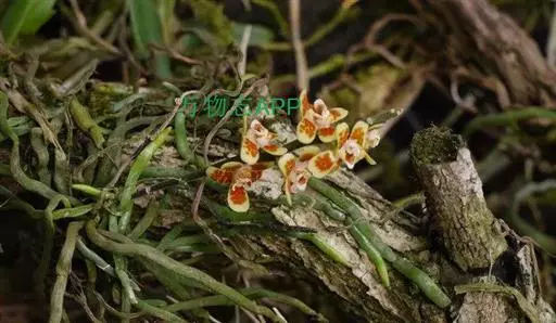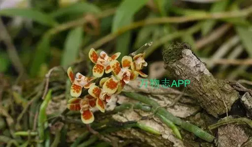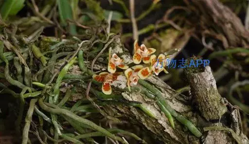 异型兰(学名:Chiloschista yunnanensis Schltr.):茎不明显,通常无叶,至少在花期时无叶。花序1-2个,下垂,不分枝,疏生多数花;花苞片膜质,卵状披针形,长3-4毫米,先端短急尖,具1条脉,背面疏生短硬毛;花质地稍厚,萼片和花瓣茶色或淡褐色,除基部外周边为浅白色,具5条脉,背面密布短毛;唇瓣黄色,贴生于蕊柱足末端,3裂。蒴果圆柱形,稍弧形弯曲。花期3-5月,果期7月。