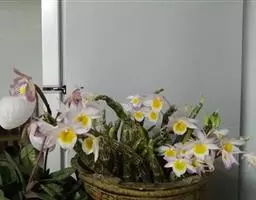 农家肥是很好的有机肥,但一定要堆放腐熟一年以上才能施用。可用这种肥液对水10-20倍浇施,尽量施在盆沿处,不接触根部,不沾兰叶。施用化肥时,要注意氮、磷、钾的平衡,并严格控制浓度,叶艺苗要控制叶绿素的合成,不宜施氮肥,也不可施含锰、镁的肥料(如钙镁磷肥等),因为锰、镁元素能加速叶绿素的合成对花艺兰,如果培育大瓣型花,可适量增施氮肥。 以叶面喷肥为主,叶面喷肥既可通过兰叶吸收补充兰株的营养,又不会使肥接触根部引起肥害,对兰花来说是一种最好的施肥方式。只要在生长发育期,坚持10天左右进行一次叶面喷肥,完全可以养好兰花,不需要往盆里施肥。可用1∶1000的磷酸二氢钾和1∶1000的硼肥,也可用芦荟液。因为芦荟中含有大量的多糖和氨基酸等营养物质,并含有二十多种矿物质,可满足兰花所需要的养分,且芦荟里含有遥芦荟酊几乎可杀死所有的病菌和病毒,施用后无需再施农药防病。 施肥要勤施薄施,少吃多餐:兰花在发育生长期需要的肥料不多,对生长旺盛的健壮兰株,可每隔10-15天施一次稀薄液肥。以天然有机物为主。天然有机肥营养元素比较全面,不必再施其他肥料,且性情平和,对植物没有副作用,而化肥容易使基质板结,且化肥大多为酸性,长期施用,会造成基质过酸,引起病害。