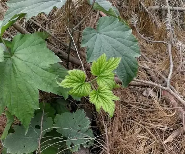 基生叶2-5,有长柄;叶片心状卵形或心状宽卵形,长(5.2-)11-22厘米,宽(6-)12-26厘米,顶端急尖3-5浅裂,边缘有小牙齿,表面疏被短糙毛,背面密被白色短绒毛;叶柄长(6.5-)25-60厘米,有柔毛。