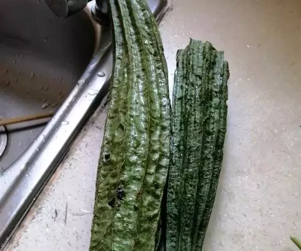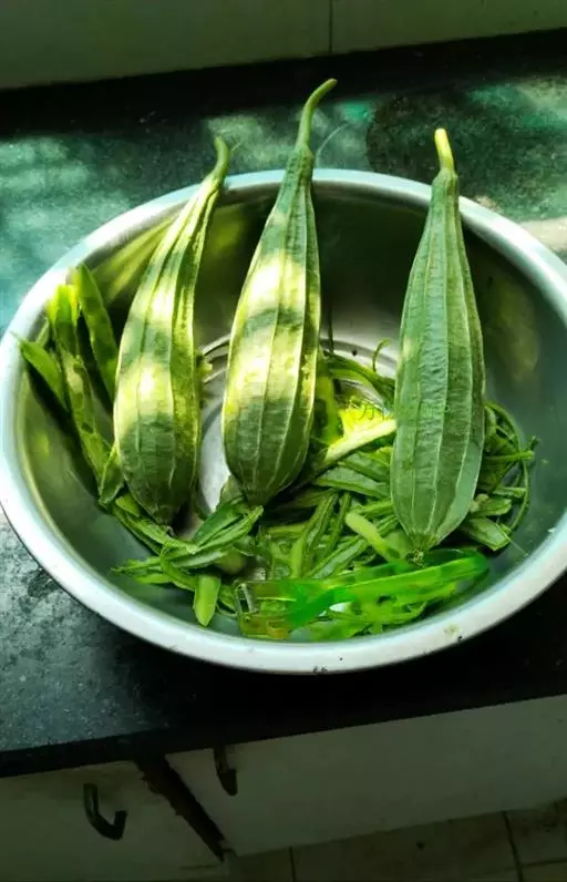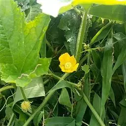 广东丝瓜(Luffa acutangula (L.) Roem.)葫芦科一年生草质攀援藤本;茎稍粗壮,具明显的棱角,被短柔毛。卷须粗壮,下部具棱,常3歧,有短柔毛。叶柄粗壮,棱上具柔毛;叶片近圆形,膜质,中间裂片稍长,上面深绿色,粗糙,下面苍绿色。雌雄同株;总花梗有白色短柔毛;花萼筒钟形,外面有短柔毛;花冠黄色,辐状,裂片倒心形,顶端凹陷,两面近无毛,外面具3条隆起脉,脉上有短柔毛;雄蕊3,离生,1枚1室,2枚2室,花丝基部有髯毛,花药有短柔毛。雌花:单生。果实圆柱状或棍棒状,无毛。种子卵形,黑色,有网状纹饰,无狭翼状边缘,基部2浅裂。花果期:夏、秋季。