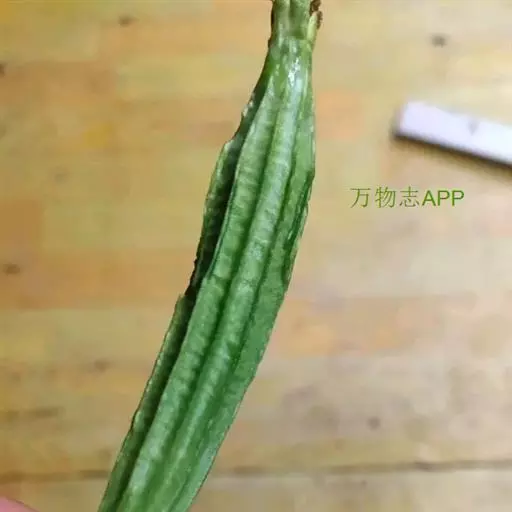 果实圆柱状或棍棒状,具8-10条纵向的锐棱和沟,没有瘤状凸起,无毛,长15-30厘米,径6-10厘米。种子卵形,黑色,有网状纹饰,无狭翼状边缘,基部2浅裂,长11-12毫米,宽7-8毫米,厚约1.5毫米。花果期:夏、秋季。