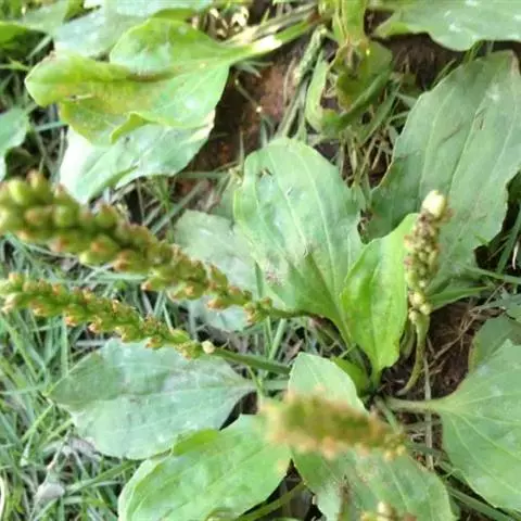 车前(学名:Plantago asiatica L.),又名车前草、车轮草等。二年生或多年生草本。须根多数。根茎短,稍粗。叶基生呈莲座状,平卧、斜展或直立;叶片薄纸质或纸质,宽卵形至宽椭圆形。花序3-10个,直立或弓曲上升;花序梗有纵条纹,疏生白色短柔毛;穗状花序细圆柱状;苞片狭卵状三角形或三角状披针形。花具短梗;花萼长2-3毫米,萼片先端钝圆或钝尖,龙骨突不延至顶端,前对萼片椭圆形。花冠白色,无毛,冠筒与萼片约等长。雄蕊着生于冠筒内面近基部,与花柱明显外伸,花药卵状椭圆形。胚珠7-15(-18)。蒴果纺锤状卵形、卵球形或圆锥状卵形。种子5-6(-12),卵状椭圆形或椭圆形;子叶背腹向排列。花期4-8月,果期6-9月。