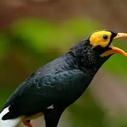金冠树八哥为椋鸟科树八哥属的鸟类。体长约23厘米,闪辉黑色。特征为具翼斑及颏黄色,脸颊裸露皮肤粉黄色。…