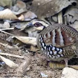 褐胸山鹧鸪:雄鸟体长22厘米,体重310克;雌鸟体长23厘米,体重220-275克。前额皮黄白色,…
