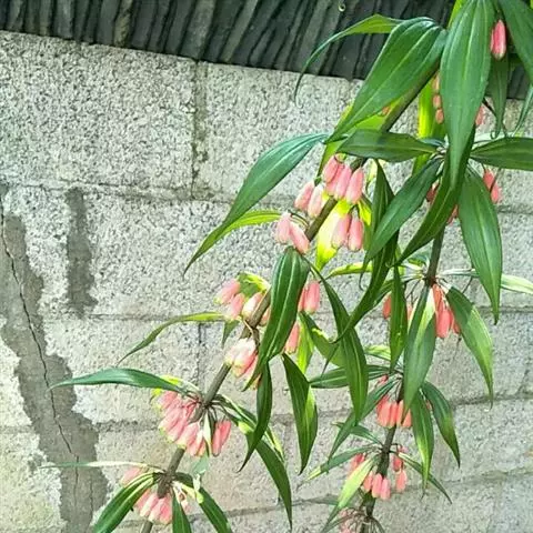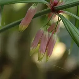 花序具(1-)2-4(-6)花,总花梗下垂,长1-2厘米,花梗长0.5-1.5厘米,苞片膜质,微小,通常位于花梗下部;花被粉红色,长18-25毫米,裂片长3-5毫米;花丝长3-5毫米,丝状或两侧扁,花药长4-6毫米;子房长4-6毫米,花柱长(8-)10-14毫米。