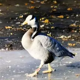黑雁是雁形目鸭科黑雁属鸟类,又称黑鹅。头、颈、胸、嘴及脚黑褐色;虹膜褐色;背及两翼灰褐色;尾下覆羽白色;胸侧及胁部多近白色纹;颈部两侧各具一个特征性白色横纹,在颈前后断开,未能联成颈环。幼鸟颈部无白斑,而翅上多白色横纹。黑雁繁殖于北美洲、西伯利亚极地的苔原冻土带,越冬于南方沿海的草地及河口。在中国安徽也能见其身影。主要栖息在海湾、海港及河口等地,在冬季里大多出现在有耐碱植物生长的湖泊和水库周围,也出现在周围地势低洼的咸水湖和沿海地区,偶尔还出现在农田地里。性活跃,喜集群,常成群活动和栖息。主要以植物性食物为食。繁殖期在6-8月,雌鸟孵卵,雄鸟通常在距巢100米以内范围内守候警诫。雌鸟孵卵时常将头和颈朝地面平伸出去以降低高度。孵化期为22-28天。黑雁被列入中国林业局2000年8月1日发布的《国家保护的有益的或者有重要经济、科学研究价值的陆生野生动物名