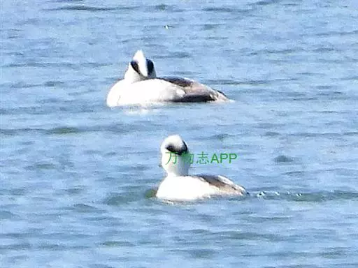 雄鸟繁殖羽头颈白色,眼周和眼先黑色,在眼区形成一黑斑。枕部两侧黑色,中央白色,各羽均延长形成羽冠。背黑色,上背前部白色而具黑色端斑,形成两条半圆形黑色狭带,往下到胸侧。初级飞羽和初级覆羽黑褐色,外侧次级飞羽黑色而具白色端斑,其次2、3枚内侧次级飞羽外侧白色或银灰色,其余次级飞羽乌灰色。大覆羽黑色,具白色端斑。小覆羽也为黑色,中覆羽白色,在翅上形成一个大而明显的白色翼斑。肩前部白色,后部暗褐色;腰和尾上覆羽灰褐色,尾羽银灰色。下体白色,两胁、具灰褐色波浪状细纹。雄鸟非繁殖羽似雌鸟,但眼先黑色部分较窄,且不甚明显。
