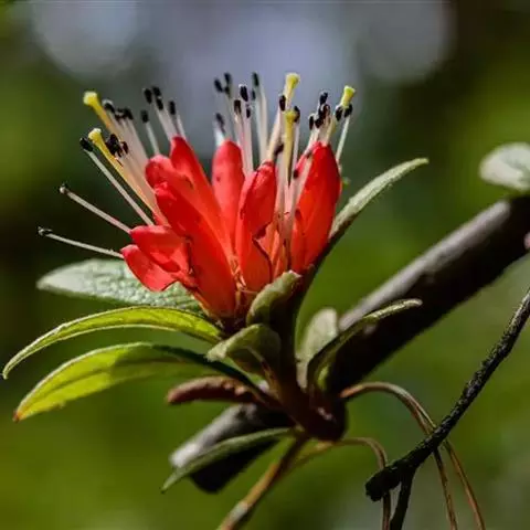 露珠杜鹃:灌木,小乔木,高约2-9米;小枝粗壮,直径约4-5毫米;幼枝有薄层绒毛和腺体,…