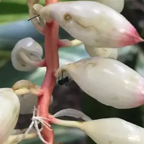 2、《本草图经》:山姜花、茎叶皆姜也,但根不堪食,是与豆蔻花相乱而微小耳。花生叶间,作穗如麦粒,嫩红色。