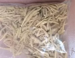 药材形态:干燥的茎叶,以叶先端之囊状体为主。叶片纸质,多破碎;长圆形或披针形;上面灰褐色而染有紫润,叶脉清晰,下面暗棕色:主脉凸出延长成卷须,约与叶等长,卷须先端连一囊状休。囊状体多已压扁,顶端连一囊盖;外表棕褐色至棕黄色,较皱缩,内表面红棕色至黄棕色,平滑,密布腺点;囊的底部常残存昆虫尸体碎片。