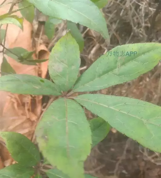 刺五加(拉丁学名:Acanthopanax senticosus (Rupr. Maxim.) Harms),别名:坎拐棒子、老虎潦、一百针。灌木,高1-6米;分枝多。叶有小叶5,稀3;叶柄常疏生细刺,小叶片纸质,椭圆状倒卵形或长圆形,先端渐尖,基部阔楔形,上面粗糙,深绿色,脉上有粗毛,下面淡绿色,脉上有短柔毛,边缘有锐利重锯齿;小叶柄有棕色短柔毛。伞形花序单个顶生,有花多数;总花梗无毛,花梗无毛或基部略有毛;花紫黄色;萼无毛;花瓣卵形;子房5室,花柱全部合生成柱状。果实球形或卵球形。花期6-7月,果期8-10月。