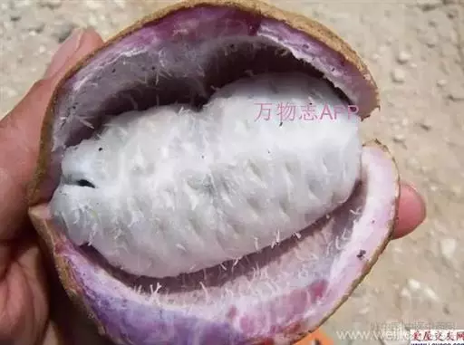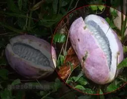 花数朵组成伞房花序式的总状花序;总花梗纤细,长1-3.5(5)厘米,数枚簇生于叶腋,基部覆以阔卵形至近圆形的芽鳞片。雄花:绿白色,外轮萼片长圆形,长12-15毫米,宽4-5毫米,先端钝,内轮的较狭,长圆状披针形,先端急尖;花瓣极小,倒卵形,长不及1毫米;雄蕊长约12毫米,花丝线形,长约7毫米,稍粗,花药长约5毫米,顶具短凸头,退化心皮小,卵状锥形,长约1.5毫米。雌花:紫色,外轮萼片卵状长圆形,长约22毫米,宽7-8毫米,内轮的较狭和较短;退化雄蕊小,花药棒状;花瓣小;心皮长圆形或圆锥状,柱头无柄,偏斜。果为不规则的长圆形或椭圆形,熟时红紫色,长(3)5-7厘米,直径2-2.5厘米,两端钝而顶常具凸头,外面密布小疣凸;种子多数,倒卵形,种皮褐色。花期4-5月,果期7-9月。