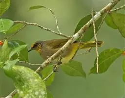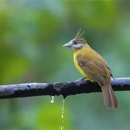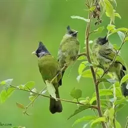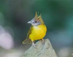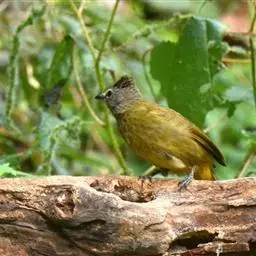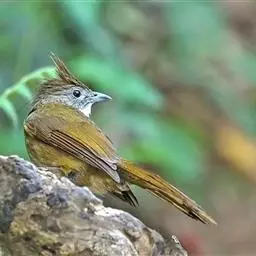 黄腹冠鹎:体长19-24厘米,是一种体型略大的褐色鹎。头顶橄榄褐色具黑褐色羽冠。白色的喉膨起,…