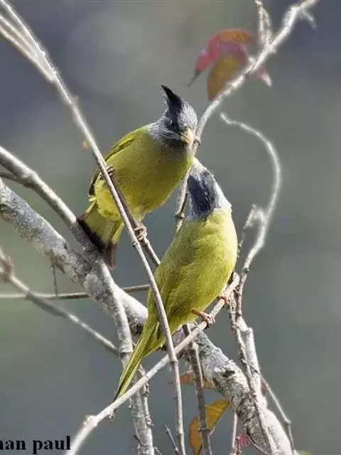 凤头雀嘴鹎:属小型鸟类,体长18-22厘米。嘴粗短、呈象牙色或乳黄色,前额和脸灰色,头顶黑色,…