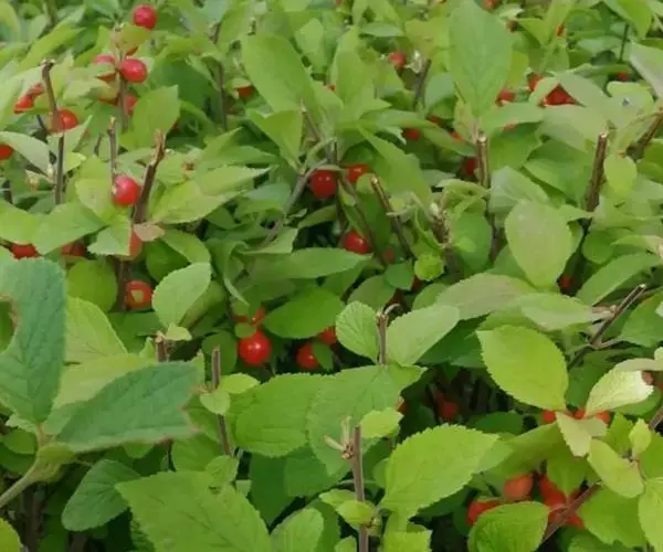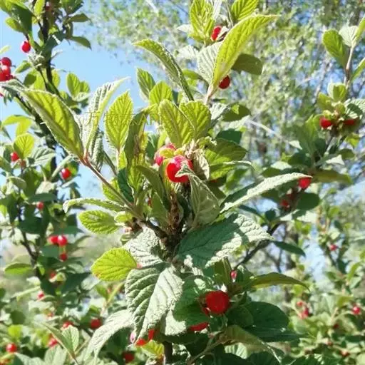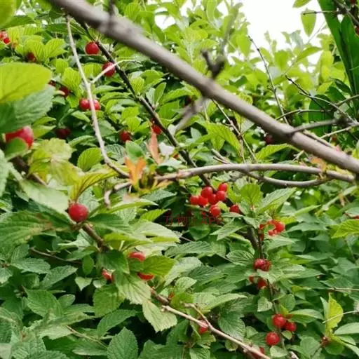 山樱桃 山樱桃 灌木,通常高0.3-1米,稀呈小乔木状,高可达2-3米。小枝紫褐色或灰褐色,嫩枝密被绒毛到无毛。冬芽卵形,疏被短柔毛或无毛。