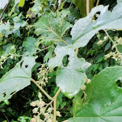 粗叶悬钩子(学名:Rubus alceaefolius Poir.)是蔷薇科,悬钩子属的落叶灌木,茎直立、具腺毛,叶互生,边缘锯齿,有叶柄;托叶与叶柄合生,不分裂,宿存,离生,较宽大,花两性,聚伞状花序、花萼;萼片直立或反折,果时宿存;花瓣稀缺,白色或红色;雄蕊多数,心皮多数,有时仅数枚,果实为由小核果集生于花托上而成聚合果,种子下垂,种皮膜质,花期4-5月,果期6-7月。