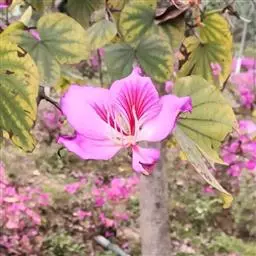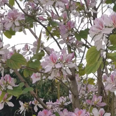 洋紫荆:落叶乔木;树皮暗褐色,近光滑;幼嫩部分常被灰色短柔毛;枝广展,硬而稍呈之字曲折,无毛。叶近…