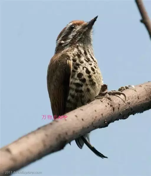 斑姬啄木鸟(学名:Picumnus innominatus),背至尾上覆羽橄榄绿色,两翅暗褐色,外缘沾黄绿色,翼缘近白色,翅上覆羽和内侧飞羽表面同背。尾羽黑色,中央一对尾羽内侧白色或黄白色,外侧3对尾羽有宽阔的斜行白色或淡黄白色次端斑。虹膜褐色或红褐色,嘴和脚铅褐色或灰黑色。常单独活动,多在地上或树枝上觅食,较少像其它啄木鸟那样在树干攀缘。繁殖期为4-7月。营巢于树洞中,每窝产卵3-4枚。