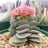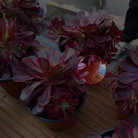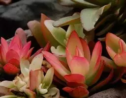 叶子表面宽厚,富肉质感且带有磨纱质感,看像石头质地;开红色小花,生于植株顶部,倒伞形密生,形状像花…
