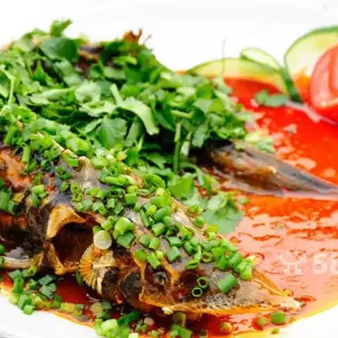 凉拌鲫鱼是一道菜品,制作原料主要有鲫鱼、老姜、大葱等,干青椒应用温水泡开,…