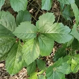 五叶爬山虎(P.quinquefolia),幼枝圆柱状。叶小,5枚。产中美洲。