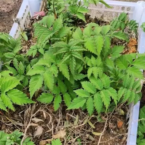 扦插:选择生长健壮、无病虫害的植株,挖取其根系,剪成15-20厘米长的根段,按株行距20厘米×30厘米进行栽植,埋土压实,浇水,约10天,可生根发芽,得到幼苗,扦插时将有芽的一端向上栽植。