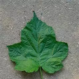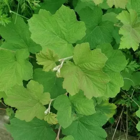 直立灌木,高1-2(3)米;枝具沟稜,幼时被细柔毛,老时无毛,有微弯皮刺。单叶,卵形至长卵形,长5-12厘米,宽达8厘米,开花枝上的叶稍小,顶端渐尖,稀急尖,基部心形或近截形,上面近无毛,下面脉上有柔毛和小皮刺,边缘3-5掌状分裂,裂片卵形或长圆状卵形,有不规则缺刻状锯齿,基部具掌状5脉;叶柄长2-5厘米,疏生柔毛和小皮刺;托叶线形,几无毛。