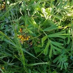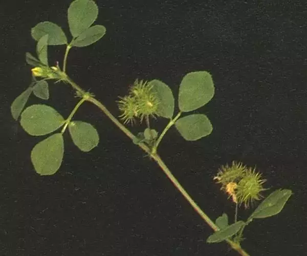 南苜蓿在荚果成熟期一次性收获的干物质产量高达10.3吨/公顷;在营养期的干物质产量达5.98吨/公顷,茎叶比为1:0.7。营养成分为:干物质91.8%、粗蛋白24.5%、粗脂肪2.5%、粗灰分14.0%、粗纤维18.6%、钙0.63%和磷0.38%。南苜蓿每100克鲜茎叶含胡萝卜素约31.5毫克、核黄素0.22毫克、钙168毫克。此外,它还含有植物皂素,植物皂素能和人体的胆固醇结合,促使其增加排泄,从而大大降低胆固醇含量,对防治冠心病有益。由此可见,南苜蓿具有较高的饲用价值,不仅是草食家畜的优质饲料,也是猪鸡等单胃动物冬春较为理想的青绿饲料。另外,南苜蓿根系发达,结瘤效果较好,固氮肥地的能力较强。在州,冬闲土地种植南苜蓿对后作水稻的增产效果明显,每年冬春季的种植面积在1000公顷以上。