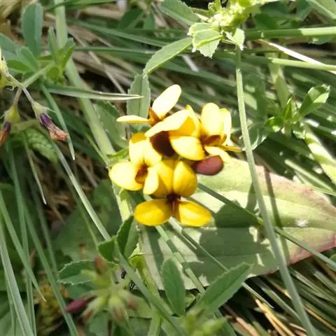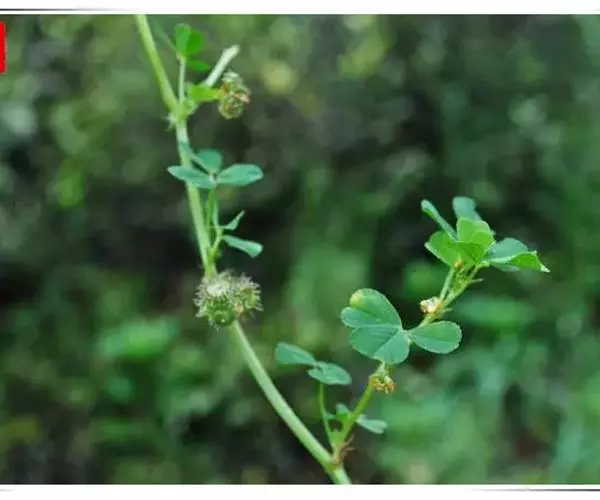 南苜蓿(学名:Medicago polymorpha L.)是豆科、苜蓿属的一、二年生草本植物,高可达90厘米。茎近四棱形,基部分枝,叶片卵状长圆形,先端渐尖,基部耳状,边缘具不整齐条裂,脉纹明显;叶柄细长柔软,花序头状伞形,总花梗腋生,纤细无毛,苞片甚小,尾尖;萼齿披针形,花冠黄色,旗瓣倒卵形,翼瓣长圆形,子房长圆形,种子长肾形,3-5月开花,5-6月结果。