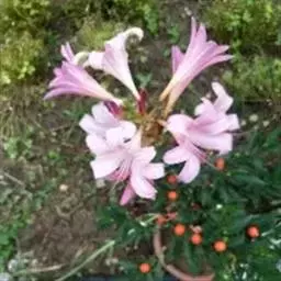长筒石蒜草本,地生。鳞茎卵球形;叶披针形;伞形花序,有花5-7朵,花白色;花被裂片腹面稍有淡红色条纹,…