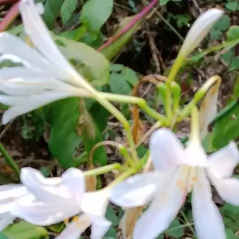稻草石蒜草本,地生。鳞茎近球形;叶带状;伞形花序,有花5-7朵,花稻草色;花被裂片腹面散生少数粉红…