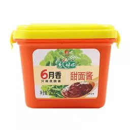 甜面酱,又称甜酱,是以面粉为主要原料,经制曲和保温发酵制成的一种酱状调味品。其味甜中带咸,同时有酱香和酯香,适用于烹饪酱爆和酱烧菜,如“酱爆肉丁”等,还可蘸食大葱、黄瓜、烤鸭等菜品。
