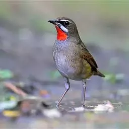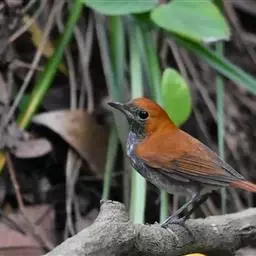 日本歌鸲:体型小似麻雀,但羽毛颜色较为美丽。嘴细长,嘴须不发达;翅短圆,上体草黄褐;雄鸟喉部橙棕色,…