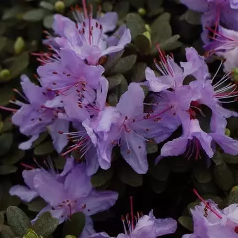 兴安杜鹃是杜鹃花科、杜鹃花属半常绿灌木,高可达2米,分枝多。叶片近革质,椭圆形或长圆形,…