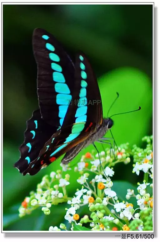 青带凤蝶Graphium sarpedon ,又名青凤蝶,是最普遍的中型凤蝶,飞行速度很快。青带凤…