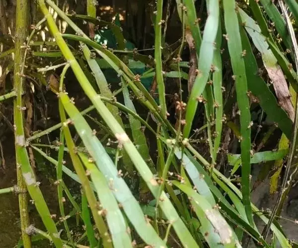 竹节蓼是一种常绿灌木。多分枝,叶状枝扁平多节,为蓼科植物竹节蓼的全草。竹节蓼不光外形奇特,可以供观赏,同时它还是一味中药,捣碎了外敷,可以治肿毒。