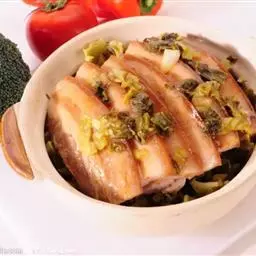 梅菜扣肉,汉族传统名菜,属客家菜 。制作材料有五花肉、梅菜、葱白、姜片等。