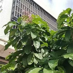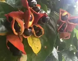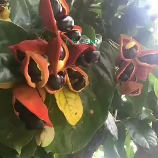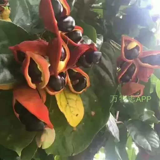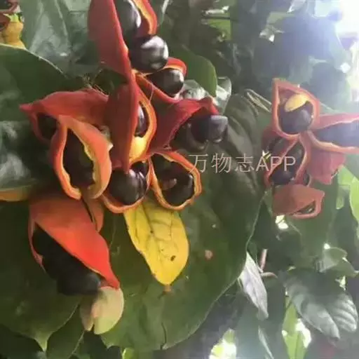 萍婆(Sterculia nobilis),属梧桐科的一种植物。又称“凤眼果”。常绿乔木。叶长椭圆形;初夏开花,无花冠,花萼粉红色,圆锥花序;果实分为四五个分果,外面暗红色,内面漆黑色。黑褐色椭圆球形种子。