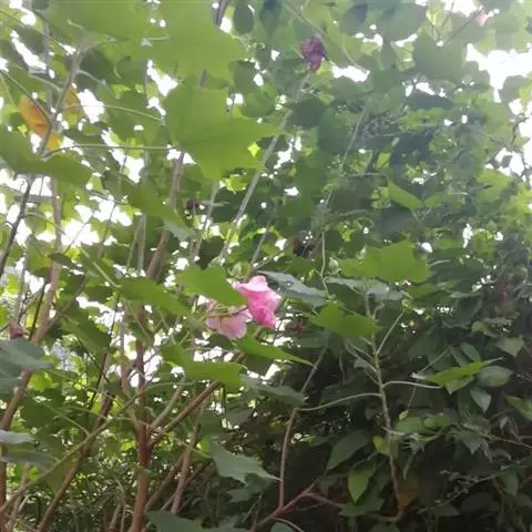 苘麻锦葵科苘麻属一年生亚灌木草本植物。茎秆较高,上面有柔毛;叶子较大且有纹路,浅绿色,边缘不平整,…