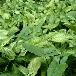 慈姑(学名:Sagittaria trifolia L. var. sinensis (Sims.) Makino )泽泻科多年生草本植物,生在水田里,叶子像箭头,开白花。地下有球茎,黄白色或青白色,以球茎作蔬菜食用。可以吃。也作茨菰。本变种与原变种不同在于:植株高大,粗壮;叶片宽大,肥厚,顶裂片先端钝圆,卵形至宽卵形;匍匐茎末端膨大呈球茎,球茎卵圆形或球形,可达5-8×4-6厘米;圆锥花序高大,长20-60厘米,有时可达80厘米以上,着生于下部,具1-2轮雌花,主轴雌花3-4轮,位于侧枝之上;雄花多轮,生于上部,组成大型圆锥花序,果期常斜卧水中;果期花托扁球形,直径4-5毫米,高约3毫米。种子褐色,具小凸起。