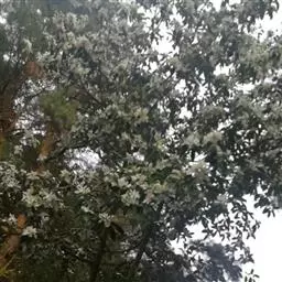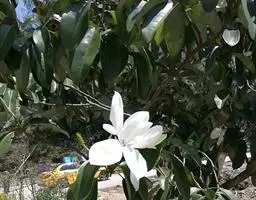 白兰(学名:Michelia alba DC.):常绿乔木,高达17米,枝广展,呈阔伞形树冠;胸径30厘米;树皮灰色;揉枝叶有芳香;嫩枝及芽密被淡黄白色微柔毛,老时毛渐脱落。叶薄革质,长椭圆形或披针状椭圆形,上面无毛,下面疏生微柔毛,干时两面网脉均很明显。花白色,极香;花被片10片,披针形;雌蕊心皮多数,成熟时随着花托的延伸,形成蓇葖疏生的聚合果;蓇葖熟时鲜红色。花期4-9月,夏季盛开,通常不结实。