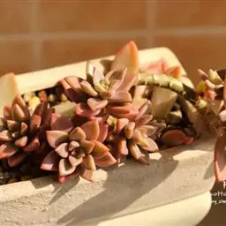 加州落日为多肉植物景天科风车草属和景天属的杂交品种,是比较少见的橙色系多肉。强烈的光照容易使色彩加…
