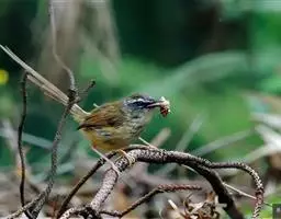 黄腹鹪莺:体长13厘米,是一种体型略大而尾长的橄榄绿色鹪莺。喉及胸白色,以下胸及腹部黄色为其特征。…