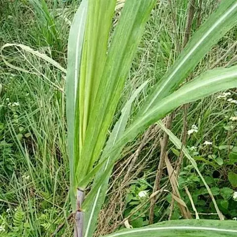 由蚜虫、切叶象甲等昆虫为害引起,发病植株心叶畸形丛生,没有叶轴。
