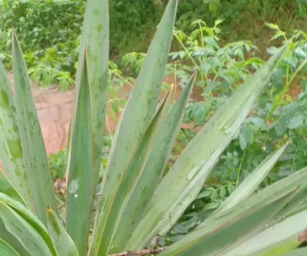 蚜虫、粉蚧等昆虫为害剑麻叶片时,其黑色排泄物沾在叶片上,形成一层煤烟,称之为煤烟病。
