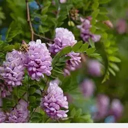 毛洋槐的繁殖大多用刺槐作砧木进行嫁接,嫁接一般在春季萌芽前进行,多采用切接法。砧木应选择胸径6厘米以上,且经多次移栽的刺槐,砧木树干通直,长势旺盛且无病虫害。接穗可选择长势健壮且无病虫害的植株上选取,一般选择2年生木质化程度较高的枝条作接穗,接穗长度一般在8-10厘米。嫁接时,接穗应削成楔形插入,接穗和砧木的皮层对合好,然后用塑料带紧紧缠绕,勿使其松动,嫁接处用蜡密封,然后套上一个塑料袋进行保湿。20天左右伤口可愈合,接穗抽绳出芽子。