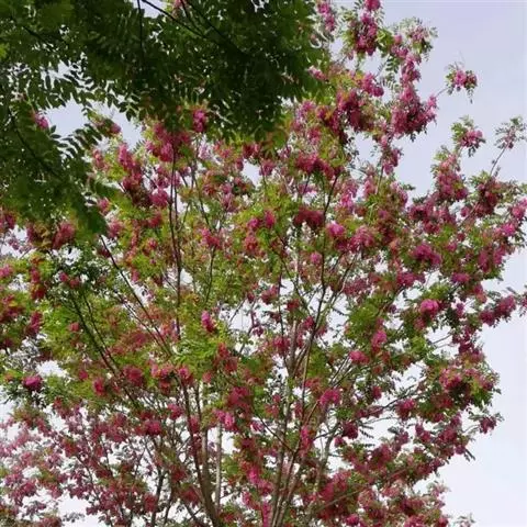 在华北地区,毛洋槐多呈大灌木或小乔木状。在对这种苗子修剪时,首先要注意整个冠形的美观,要保持冠形呈伞状,对过于繁密的枝条要及时进行疏除,对过长的枝条要进行短截。要及时将病虫枝、干枯枝和无用枝疏除。对于砧木抽生出的萌蘖,要及时抹除。